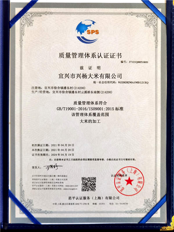 宜興市興楊大米有限公司坐落于江蘇宜興市徐舍鎮(zhèn),是一家集水稻種植、收購、加工、銷售與一體的江蘇無錫市農(nóng)業(yè)產(chǎn)業(yè)化龍頭企業(yè)。本公司多年被評為“無錫市放心糧油示范加工企業(yè)”,“江蘇省糧食經(jīng)營者守法誠信A級企業(yè)”等。2020年12月獲得“無錫好米”金獎。注冊資本1200萬元,已具備年產(chǎn)5萬噸大米的加工能力。